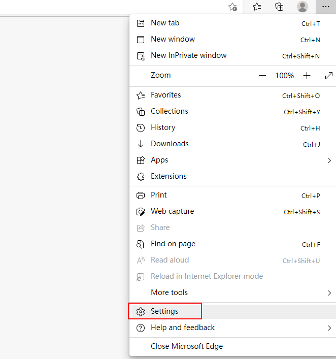 Step 2. Click the drop-down box on the right side of the Edge browser and select Settings to enter.