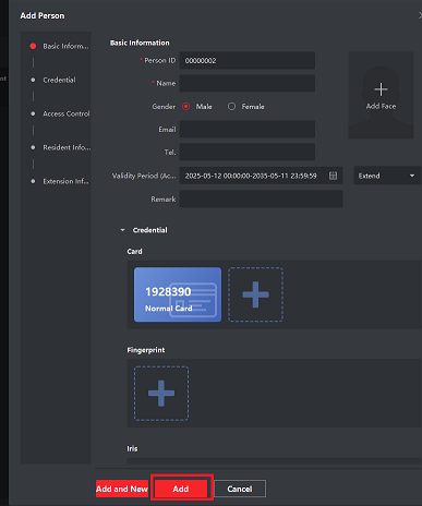 Step 3 Click "Add" in the "Add Person" section to save the changes.